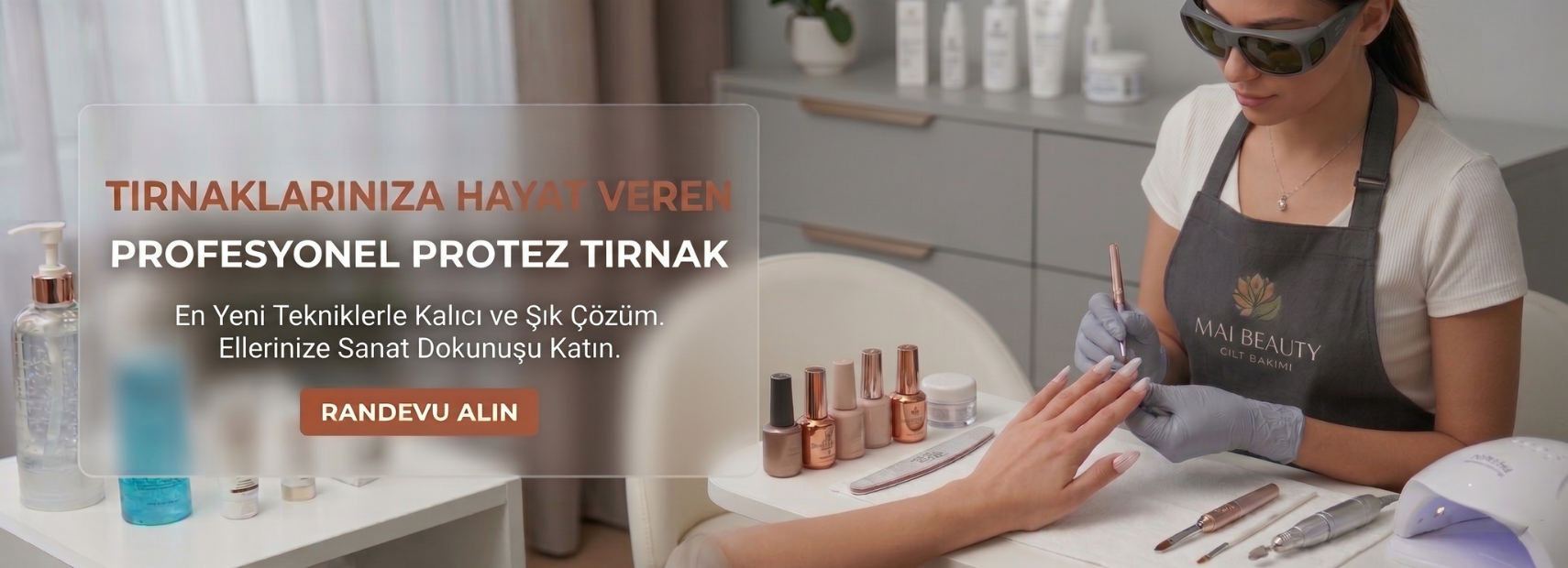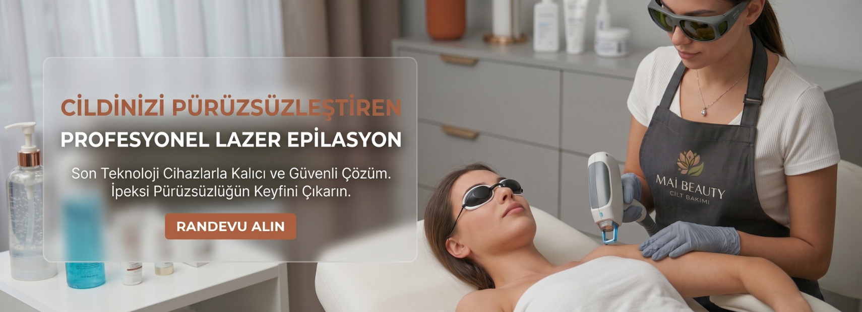 Mai Beauty olarak, modern uygulamalar ve profesyonel dokunuşlarla cilt ve bakım ihtiyaçlarınıza özel çözümler sunuyoruz. Her işlemde konfor, hijyen ve memnuniyet önceliğimizdir.